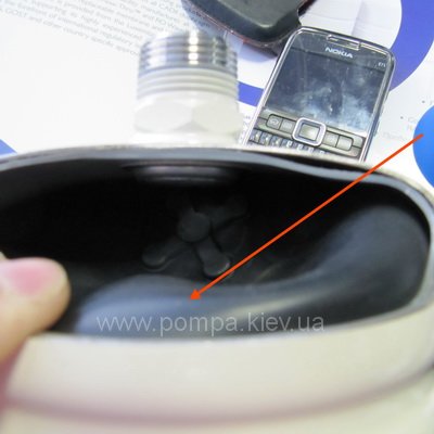 Когда отсутствует давление воздуха в воздушной камере гидроаккумулятора, давлением воды, создаваемым насосом, мембрана плотно прижимается к внутренней стенке гидроаккумулятора и приклеивается к ней.
