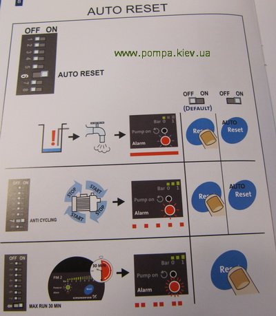 | обеспечивает защиту насоса от сухого хода и аварийный сигнал цикличности |