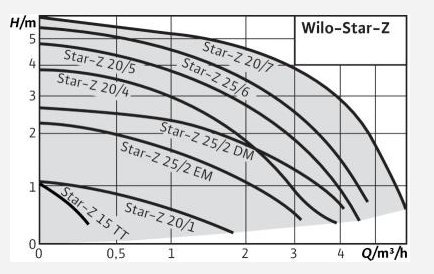 Wilo-Star-Z - циркуляционные насосы с мокрым ротором с резьбовым соединением. Применяются в циркуляционных системах питьевого горячего водоснабжения и подобных системах. Для регулировки мощности могут иметь до трёх ступеней частот вращения.