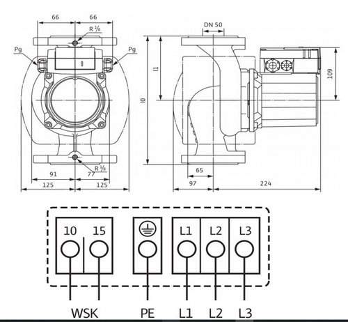 - Циркуляционный насос мощн. P2 350 Вт, 3~400 V, соед. труб DN 50. длина 280 мм с корпусом из бронзы