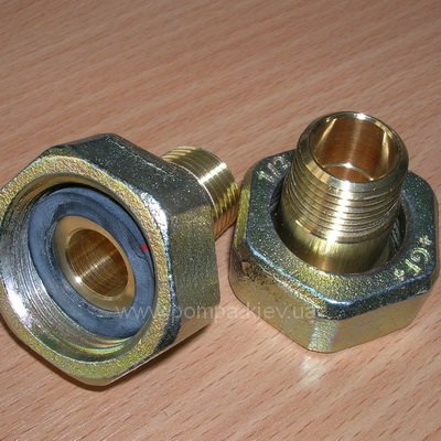 - Резьбовые соединения из латуни для монтажа наосов, размер: R1/2"х ф15 х G1", НВ