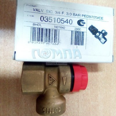 - Предохранительный клапан 3 бар, +120 °С, 3/4", ВВ