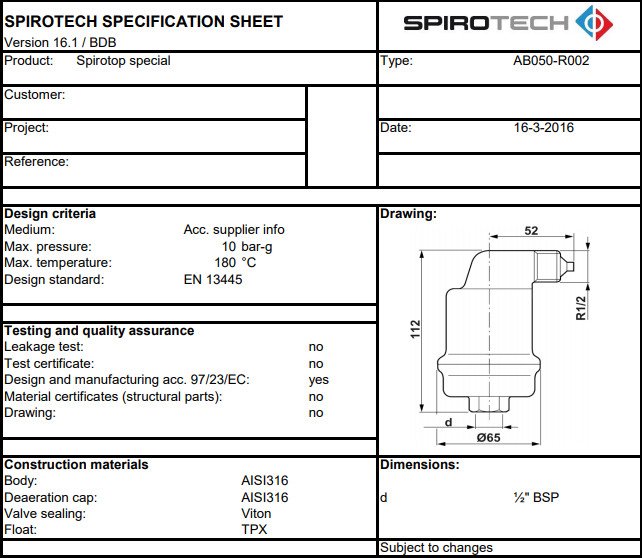 Изображения к товару "Spirotech Spirotop 180°C /10 бар 316L/TPX"