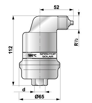 - Автоматический воздухоотводчик, для систем с солнечным коллектором 1/2", 180°С, 10 бар, мат. попл. TPX
