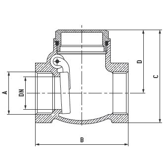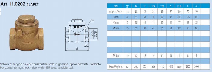 - Обратный клапан горизонтальный 1", корпус и седло из латуни, до +95 °C