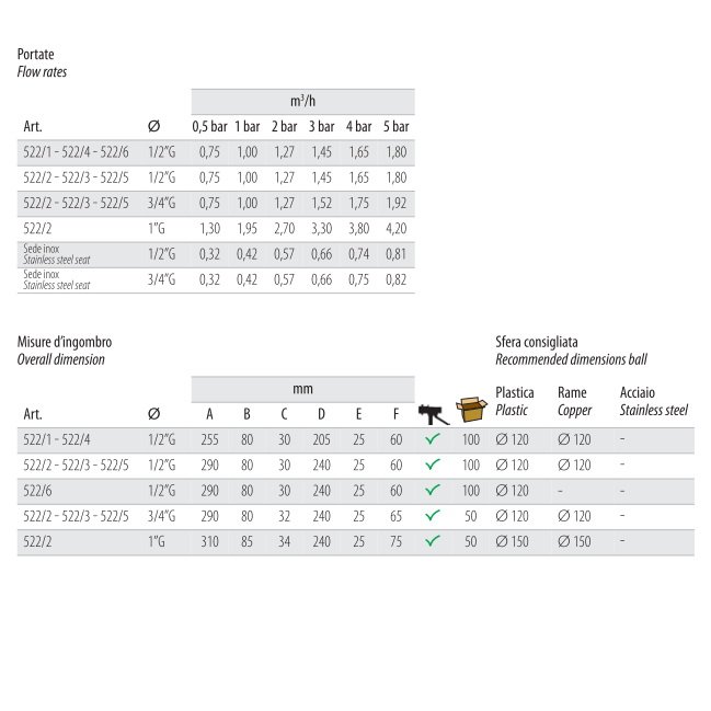- Бесшумный поплавковый клапан с трубкой, 1" поплавок диам. 150 мм.