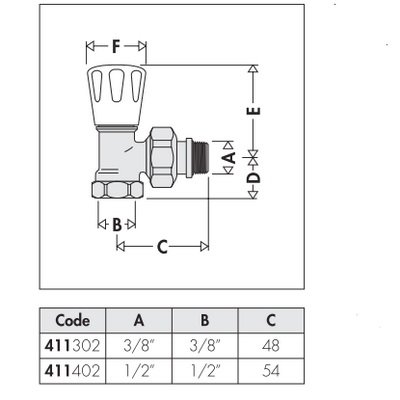 - Радиаторный вентиль угловой, подключение 1/2" верхний, 10 бар