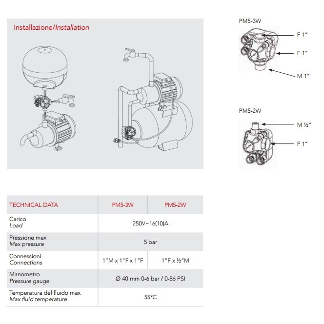 - Реле давления для насоса, диапазон от 1 до 5 бар, 250 V, 16 A, с манометром и тремя выходами