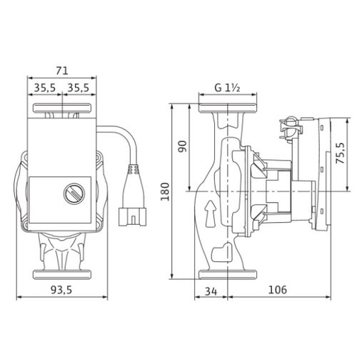 - Циркуляционный насос мощн. 4...75 Вт, напор макс. 7, 5 м, расход макс. 4 м3/час, монт. длина 180 мм.
