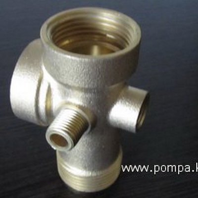 - Пятиходовой соединительный патрубок из латуни с выходами 1" и 1/4", высота 80 мм