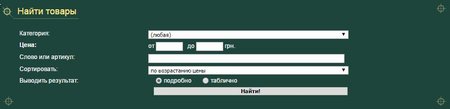 Двигаясь по разделам каталога, вы увидите список товаров с краткой информацией о них. Чтобы посмотреть детальную информацию об интересующем вас товаре нажмите на его изображение или название, после этого вы перейдёте на страницу полного описания товара. Сразу перейти на страницу описания товара можно с помощью текста быстрого поиска, расположенного внизу главной страницы.