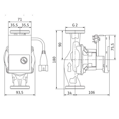 - Циркуляционный насос мощн. 4_75 Вт, напор макс. 7, 5 м, расход макс. 4 м3/час, монт. длина 180 мм.