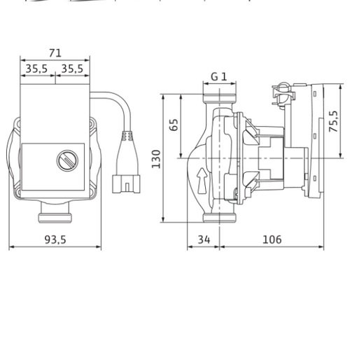 - Циркуляционный насос мощн. 4...75 Вт, напор макс. 13 м, расход макс. 1, 6 м3/час, монт. длина 130 мм.