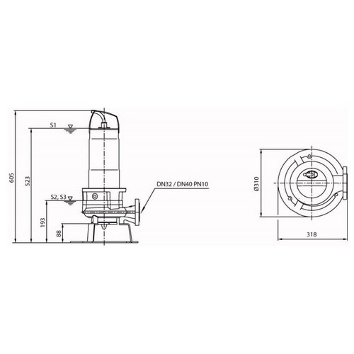 - Погружной дренажный насос для сточных вод с режущим механизмом мощн. 1.5 кВт, макс. напор 29 м, макс. расход 18 м3/час, 1~230В, 50Гц